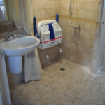Reconfiguring the entire bathroom to make it wheelchair accessible and transfer friendly. Hallways were widened to ADA standards. Some custom cabinet work was also required.